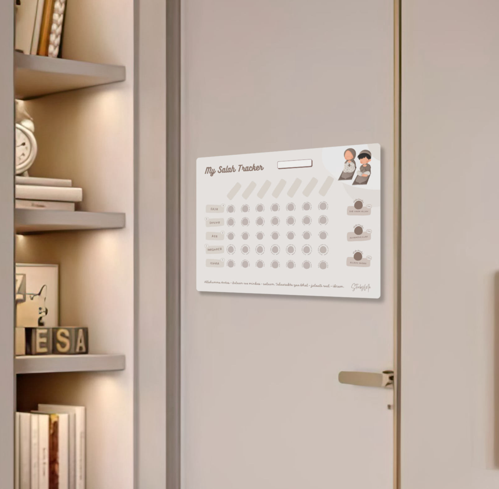At Sticky Me, we know that life can sometimes make it easy to forget to make dua during your daily routines. That’s why we’ve created beautiful reminders to help you and your family make dua throughout the day.