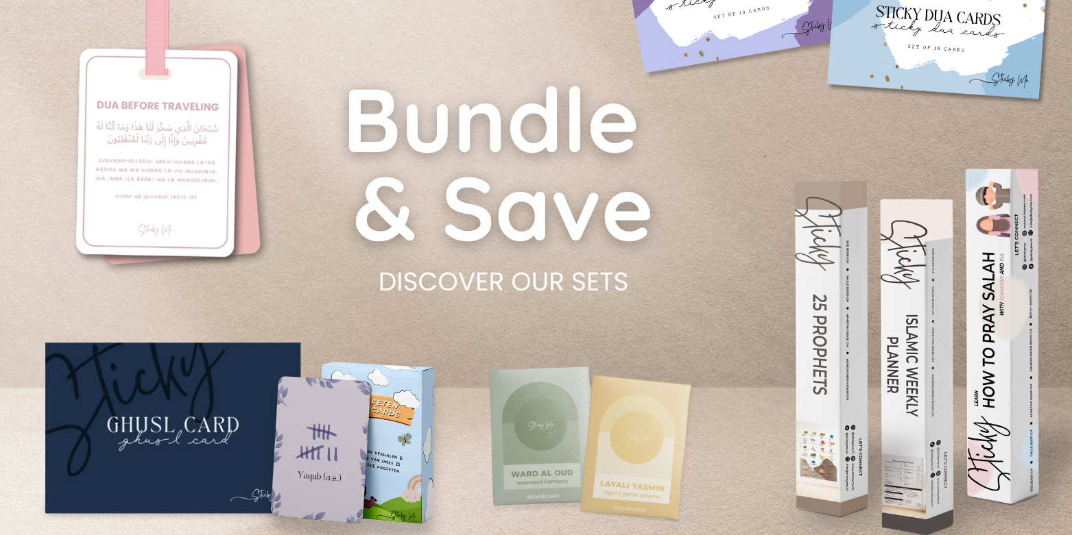 At Sticky Me, we believe Islam deserves a natural and joyful place in children’s daily lives. Our flashcards featuring the stories and duas of 25 Prophets, for instance, make learning a delightful experience. Watch their smiles grow as they strengthen their Imaan in a playful way, creating cherished family memories together.